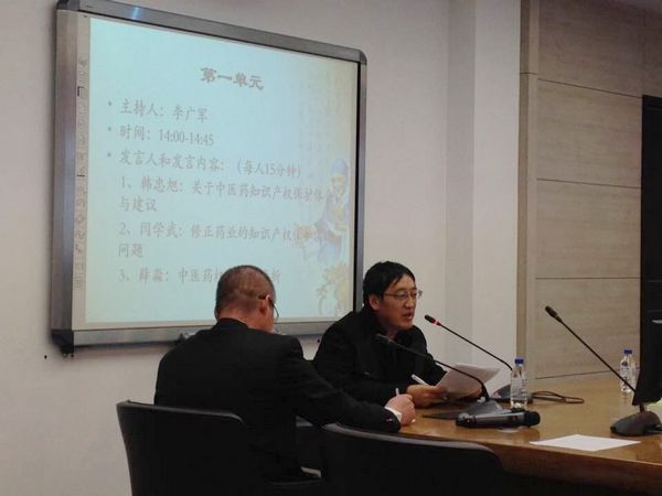 张新锋副教授以“中医药知识产权保护的思考”为题,阐述了中医药的特点、现代知识产权制度与中医药保护的不融洽之处,并从遗传资源保护、中药现代化等方面探讨了中医药保护的出路问题。