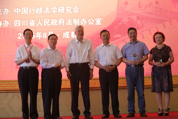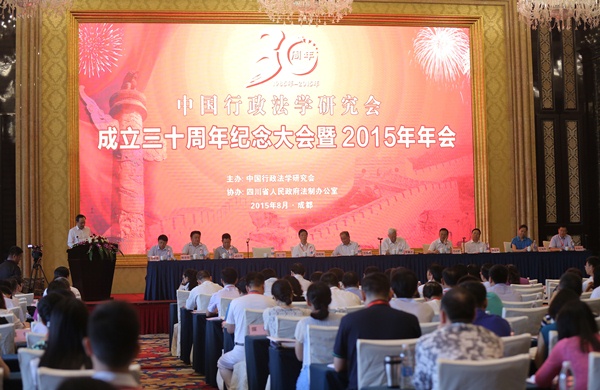 8月22、23日,中国法学会行政法学研究会成立三十周年纪念大会暨2015年年会在四川成都隆重召开。中国法学会会长王乐泉,中国法学会行政法学研究会名誉会长、第九届全国政协副主席罗豪才,中国法学会副会长、学术委员会主任张文显,中国法学会副会长、最高人民法院江必新,中国法学会行政法学研究会名誉会长、中国政法大学终身教授应松年等领导,以及来自全国各地的行政法专家学者和媒体代表等共350余人参加了此次会议。开幕式由中国行政法学研究会会长、中国政法大学副校长马怀德教授主持。本次会议的主题是“行政法学与加快法治政府建设”。在为期两天的时间里,与会的300多位学者将围绕“行政法学发展三十年回顾与展望”、“行政执法体制改革”、“政府权力清单制度”、“重大行政决策程序”四个议题,展开深入研讨。