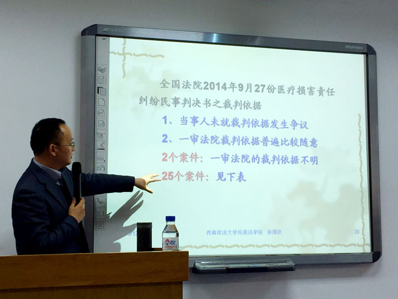 教授、博士生导师侯国跃老师做“医疗损害责任裁判规则依据之裁判”主题讲座。茶座由曹险峰教授主持。