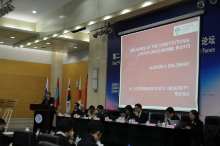 副教授阿列克谢·多尔日尼科夫分别进行题为《东北亚司法协助领域中的合作发展》、《中蒙俄经济走廊软法构建问题》、《走向东北亚的中国仲裁》、《“报”文化视角下的贿赂型犯罪的认定》、《论抵押物受让人的法律地位——与日本法相比较》《中日韩三方投资条约和亚太地区的多边主义》《宪法审查对经济权利的影响》的主题发言,并由延边大学极速赛车