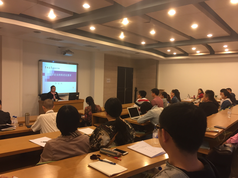 李佳欣老师首先概括了以下七点非常重要的论文形式要求:(1)标题适当;(2)摘要、关键词规范;(3)文中各级标题恰当归纳,逻辑性强;(4)文中各部分安排妥当;(5)观点明确;(6)语言精准、无错别字;(7)参考文献规范。针对以上各点内容,李老师通过具体实例列举等形式,分别进行了一定的展开: