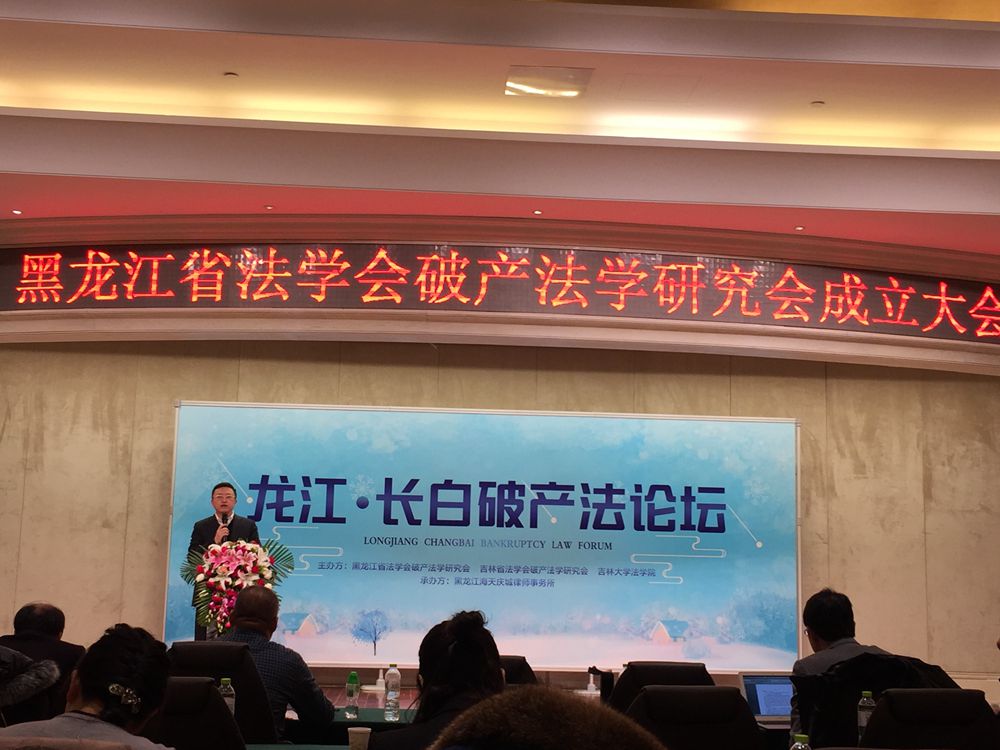 2018年1月27日,首届“龙江·长白破产法论坛”暨黑龙江省法学会破产法学研究会成立大会在哈尔滨举行,本次论坛由黑龙江省法学会破产法学研究会、吉林省法学会破产法学研究会、极速赛车