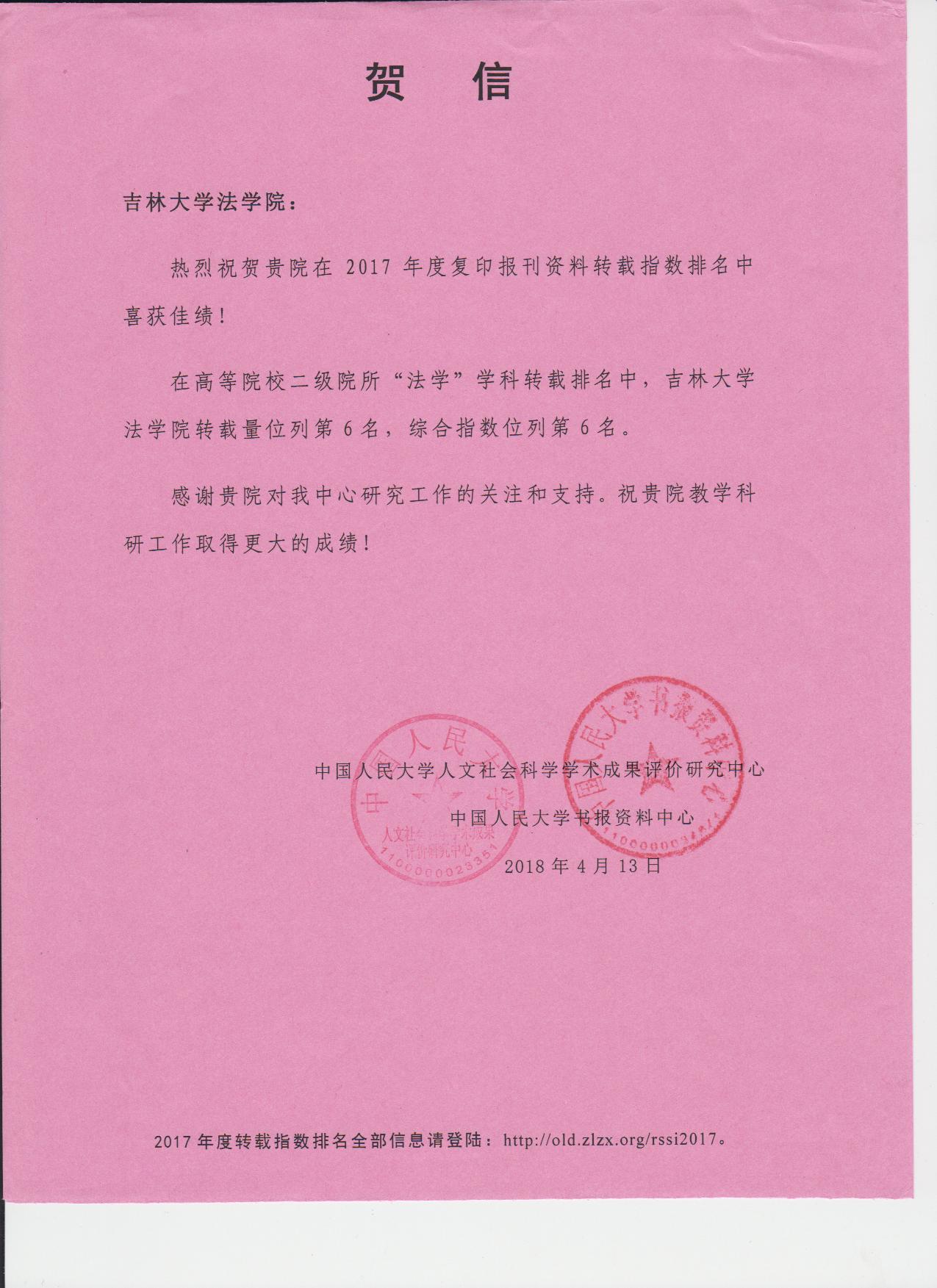 在2017年度复印报刊资料转载指数排名中喜获佳绩!在高等院校二级院所“法学”学科转载排名中,极速赛车