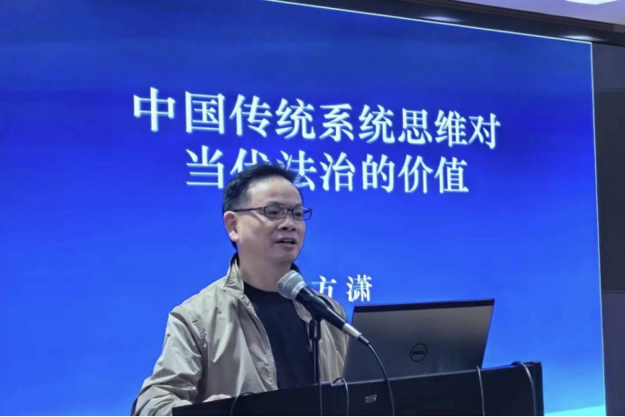 方潇教授,发言题目为《传统系统思维对当代法治的价值》。他首先阐述了中国传统系统思维的内涵,随后以“保辜”制度为切入点引出古今中西在系统思维方面的差异,最终落脚到中国传统文化要“取其精华、去其糟粕”。