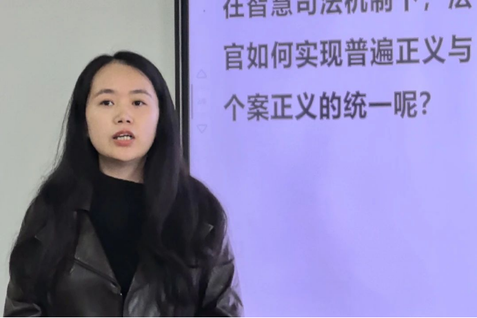 王静讲师,发言题目为《中华传统司法说理在当代的创造性转化》。她指出,在智慧司法背景下,技术并不能完全满足社会公正的需求。法官应该通过说理、认知情感的融入等方式,实现普遍正义与个案正义的统一。