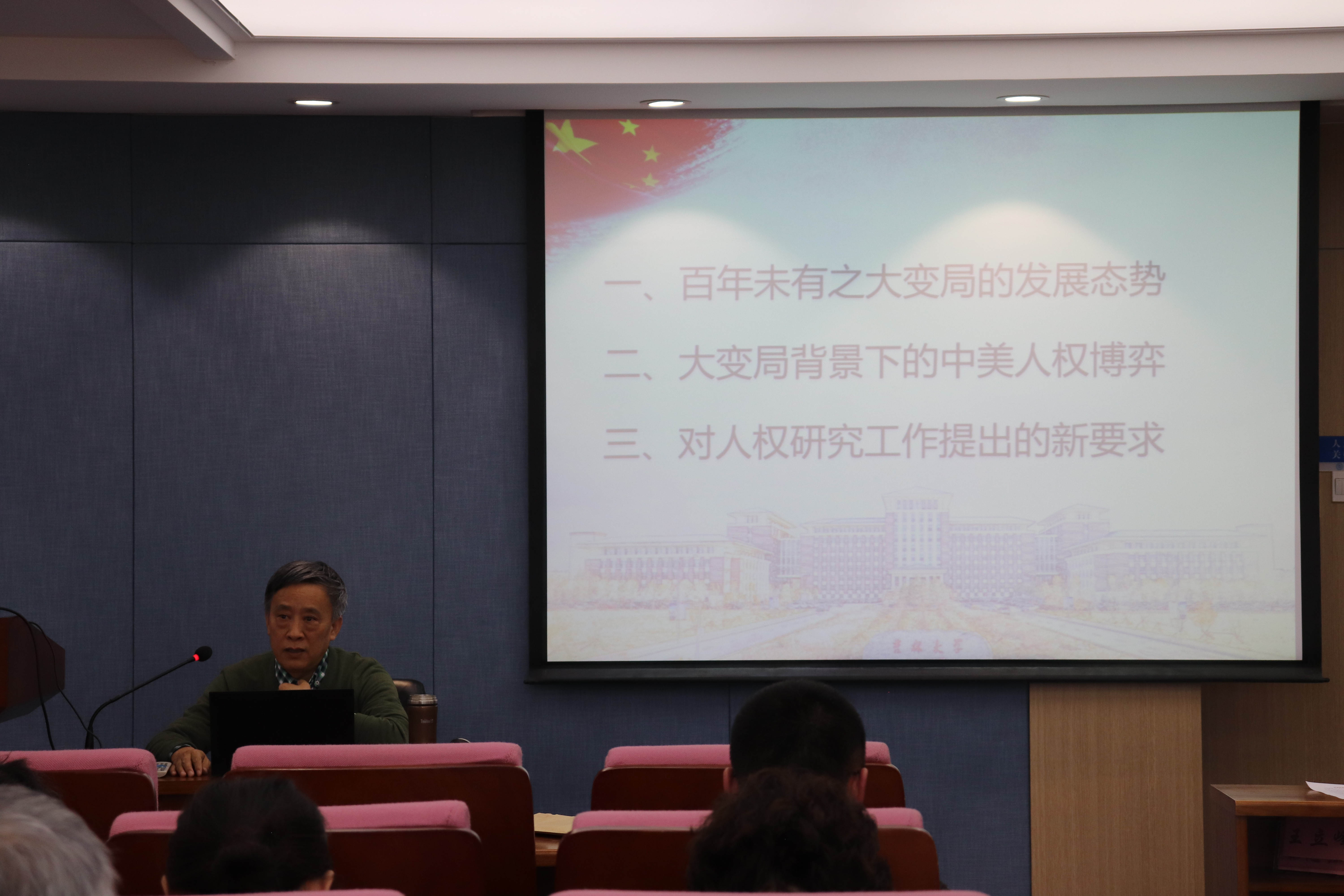 就“百年未有之大变局背景下的人权研究工作”,做专题学术报告。报告会由院长、人权研究中心执行主任何志鹏教授主持,极速赛车