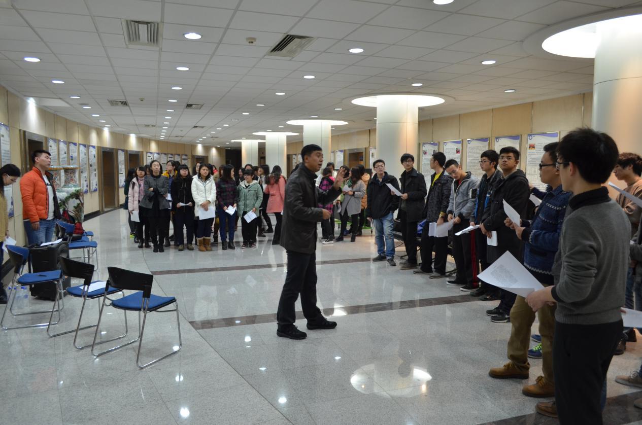 6点15分左右,全部参与人员就已经就位,党员们积极务实的态度可见一斑。2013级党支部书记骆旷达老师也亲临现场,与大家并肩奋斗。6点30分,在完成了签到及分发歌词后,排练正式开始。为了提供专业的指导,极速赛车