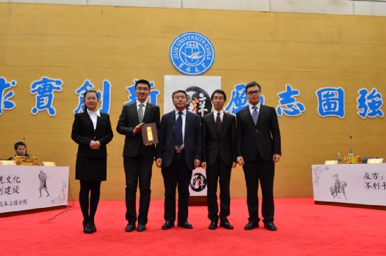 第二十四届“先锋论坛”大学生辩论赛决赛暨颁奖典礼于东荣大厦一楼报告厅盛大开幕。本场比赛的辩题是儒家传统文化是否有利于法制建设。正方汽车工程极速赛车