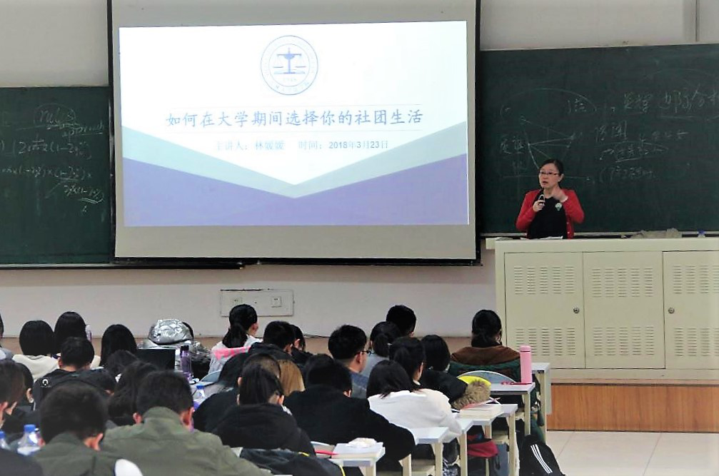 党委副书记林媛媛老师在三教八阶就周日即将举行的社团纳新活动,为同学们开展了名为“如何在大学期间选择你的社团活动”的讲座。现场气氛良好,同学们热情高涨,听讲认真专注。