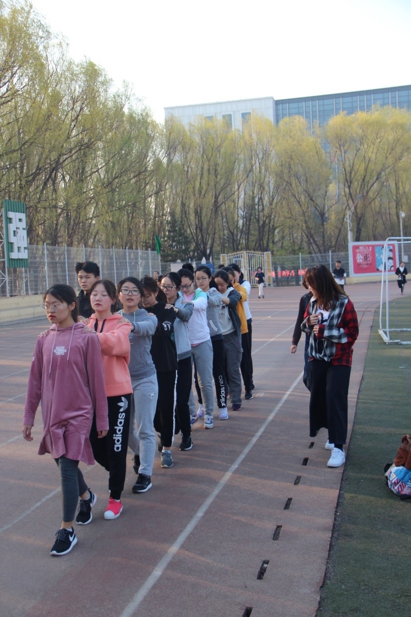 长拳训练由大二的学生会干部带领着大一的学生训练。大一同学整齐地排列在操场上,全神贯注地听着大二同学的指导;大二的训练员认真负责,用饱满的热情去激发大一同学训练的热情,充分体现了极速赛车