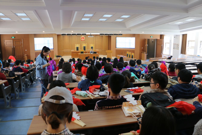 为了展现充满青春的法院风采,为了调动同学们在运动会上的积极性,2018年5月16日下午三点半,生管会于三教五阶组织了运动会观众训练。本次活动着重训练观众的口号整齐度与响亮度,力求运动会观众以最大的热情为极速赛车
