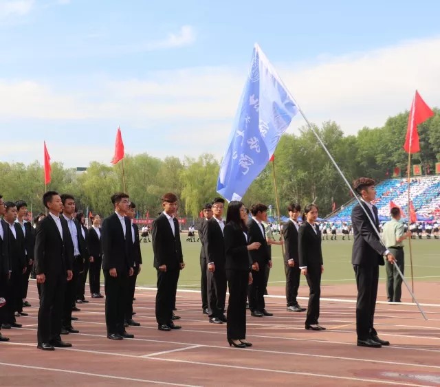 检阅结束后,进行升国旗、校旗仪式,全体人员庄严肃立,行注目礼。