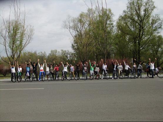 9:30左右,同学们终于到达了目的地。踏入净月公园的那一刹那,大家就已经被公园里迷人的风景深深吸引,尽情地跳跃着、奔跑着。在许多同学的共同号召下,同学们在公园门口就摆起了各种创意无限的姿势,为同学们留下了许多精彩的班级合影。接着,考虑到净月潭面积广阔,绕湖行路程遥远,大家决定骑车前行。随后,在草长莺飞的小路上,在落英缤纷的大道旁,同学们整齐有序地骑着自行车欣赏着路边的风景,一路上不时传来同学们的欢声笑语。春风吹拂,树枝摇曳,明净的水面倒映着每一个人的笑脸。
