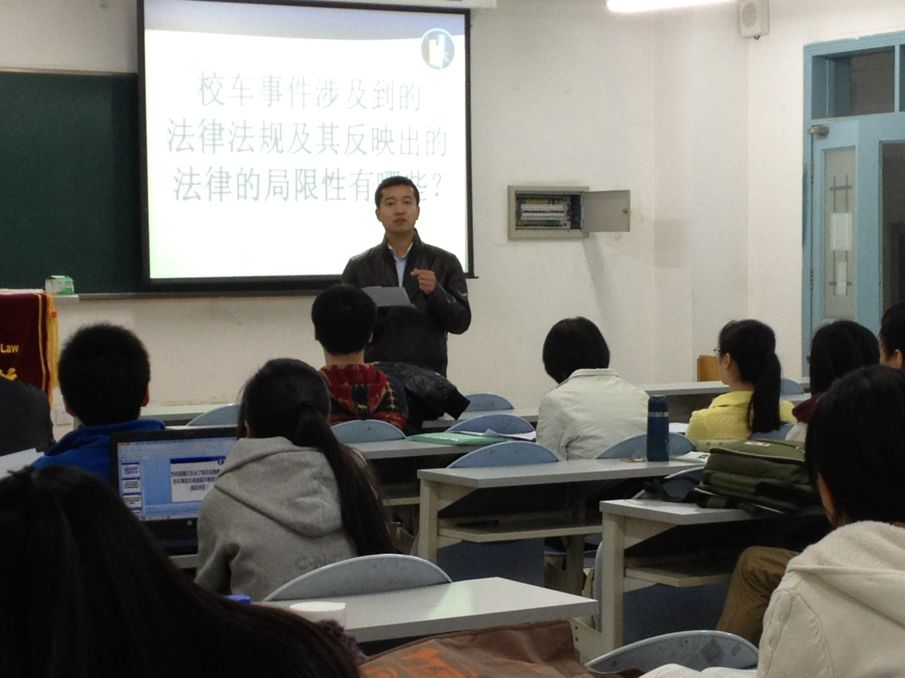本次论坛主要就当今频发的校车安全事故问题进行了探讨。论坛伊始,主持人通过幻灯片与新闻视频介绍了典型的校车事故案例,同学们围绕环境因素、人为因素和校车因素三方面分析了近来我国校车事故频发的原因。然后,同学们分别就事故中涉及的法律法规和当前法规的局限性发表了自己的看法,并提出了认为可行的建议。之后,王军明老师针对同学们的回答进行点评并着重提出了要建立常态化机制、事前预防等建议。接下来,主持人带领大家进行拓展延伸,将中美校车制度与现状进行比较,分析其法律价值理念与社会体制的差异,并对我国当前状况进行反思。同学们踊跃发言,从人权、经济建设、资源配置等方面发表自己的看法。王军明老师也从法律制度、社会执行等方面给出了自己的建议,他说,作为一个法律人,应当考虑如何针对社会中的种种现状完善法律制度,而同时作为一个公民,应当在社会中积极参与法律的执行,为切实保护人民的权利进行不懈的努力。最后,大家由“校车安全”联想到“食品安全”继而引出关于“安全危机”的探讨,并作出自己的制度设计。
