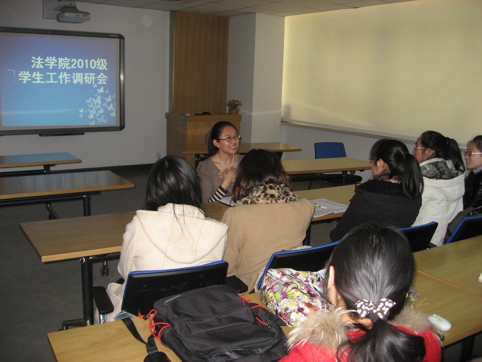11级学生工作调研会由辅导员田园老师主持。会议针对班级文化建设内容单一,活动创新性,参与性不强,班级干部创新能力和组织协调能力有待提高等问题进行了调研。同学们提出,大二学生正处于学习兴趣和学习热情的鼎盛期,对法务实践、毕业去向、就业方向等问题关注较多,同时对情感方面的关注相对大一增多,正处于感情问题的多发期。对于班级文化建设的内容、形式也提出了许多建设性意见。
