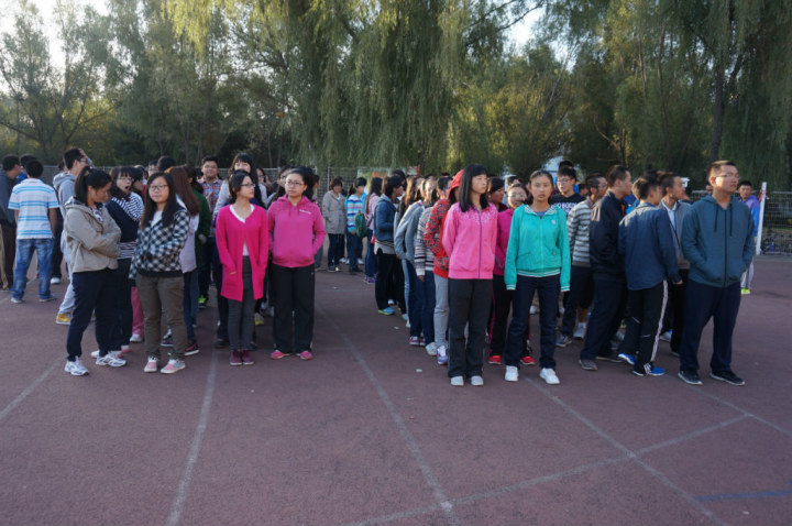 生管会组织,同学们在体育场集合后,在体育极速赛车