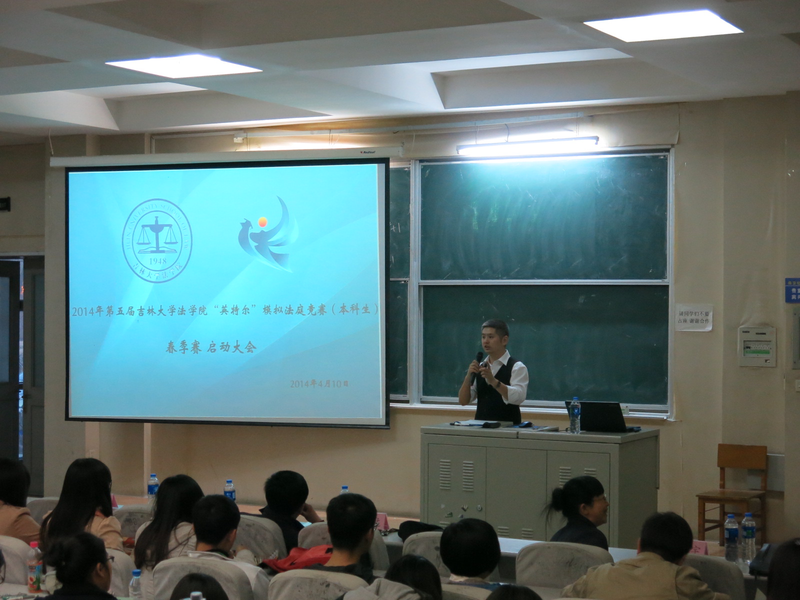 2014年“英特尔”模拟法庭竞赛春季赛启动大会于逸夫教学楼四阶准时开幕,出席本次大会的有:极速赛车