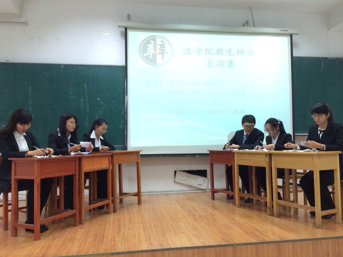 本次表演赛正方的观点为当今中国国情教育应更注重培养民族自豪感,反方的观点为当今中国国情教育应更注重培养民族危机感。双方队员先进行自我介绍,之后双方围绕各自的观点进行激烈对攻,不时引起大一的学弟学妹的热烈掌声,最后在正方三辩的总结陈词中结束了本次表演赛。