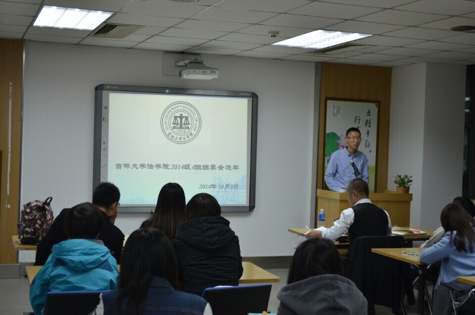 四班举行班委竞选,共有17名候选人参选。2014级辅导员高岩老师、2014级四班班主任方天皓全程参与了活动。17位候选人的竞职演讲各具特色,风格不一,但都表现出了极大地热情和信心。并且,有8位候选人竞选学习委员这一职务,在其他位置,也有很多同学争相向前。在经过了17个三分钟的演讲之后,现场进行了投票与唱票。本着公平公正公开的原则,共选举出5位班委人员。本次选举,由辅导员高老师现场监督,保证了绝对公平,也体现出班级对这项工作的重视。