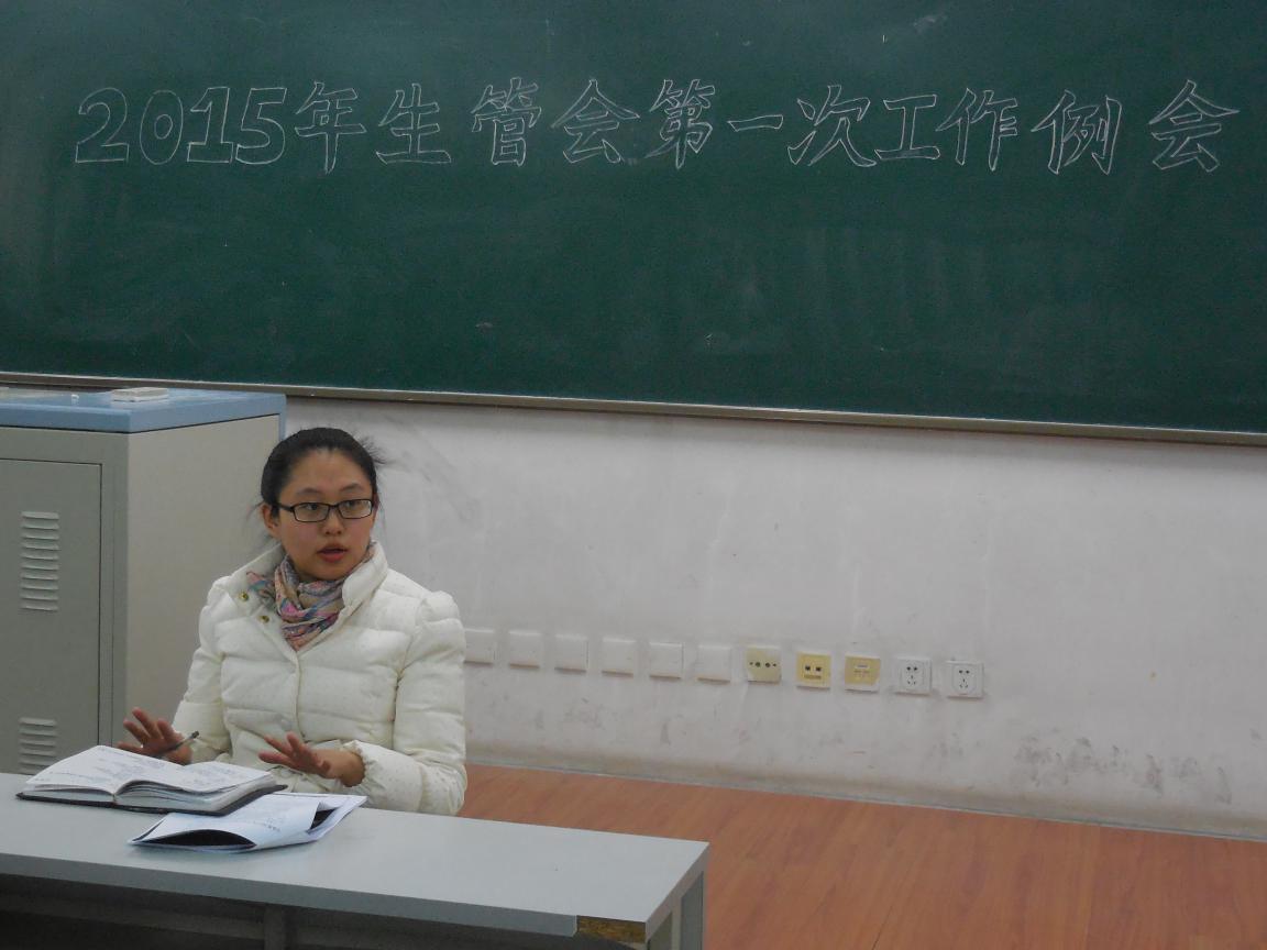 会议开始后,马旭老师首先对2014年生管会的整体工作做了总结。总体来看,过去一年,生管会各方面工作都取得了突出的成绩,不但做到了各项活动都有创新、有进步,而且许多活动已渐成体系,形成了自己的文化特色。更重要的是,在生管会各项活动的组织、举办过程中,工作人员都充分发扬了生管人“勤勤恳恳做人,踏踏实实做事”的优良传统,这是非常值得肯定的。