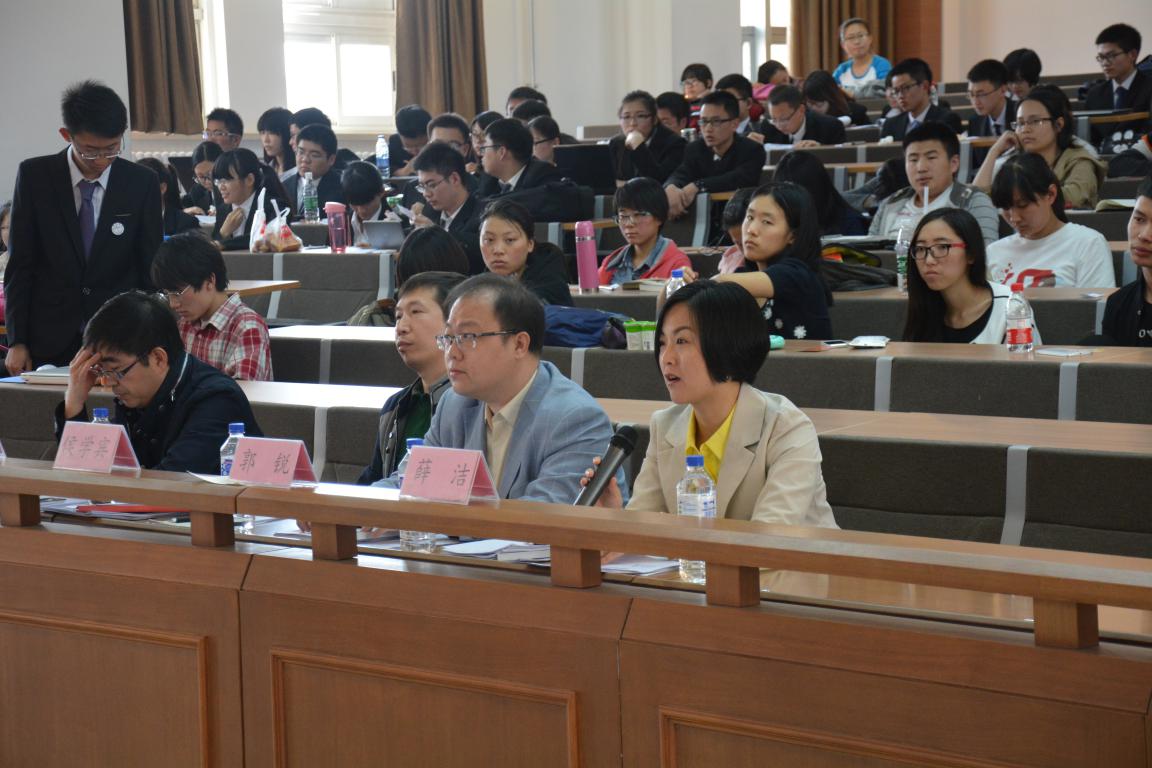 决赛分为队伍展示、风采展示、答辩及评委点评四个环节。参赛队伍个个有备而来,风采展示更是让人眼前一亮,各种PPT、视频、图片、表格轮番上阵,展示内容丰富多彩,赛出了风采,比出了风度,场下的观众也不时报以热烈的掌声。答辩环节紧张激烈,老师们的“麻辣点评”可谓一针见血,生动而不失深刻的剖析无论是场上选手还是场下观众都感觉获益匪浅。