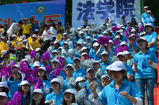 观众团身着蓝衣,手持各式各样的道具,伴着鼓点,为场上拼搏的运动员们和各个集体项目方队欢呼呐喊,气氛好不热闹!火红的扇子,缤纷的翻花,在观众的手中闪耀绽放,变换格式各样的造型,令人目不暇接。那让我们走进观众团,听听他们的声音。