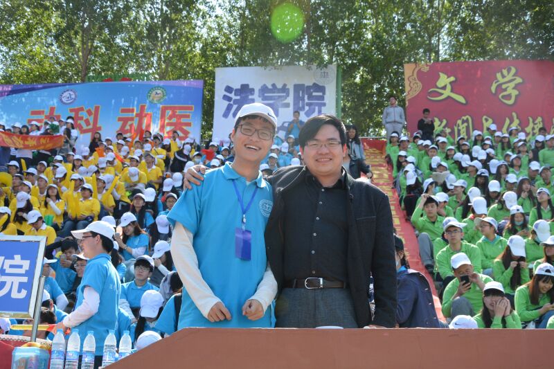 同学加油时非常卖劲儿!而且能够随机应变,表现得不错!