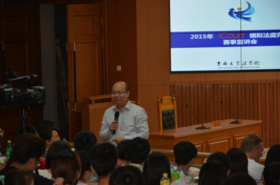 团委为本次模拟法庭召开任务布置会议时,高岩老师就已提前来到三教五阶为晚上的宣讲会做细致的准备工作。几位即将进行表演赛的同学也于多日前就开始为本次比赛做着充分的准备。晚六点整,32支队伍,200余名队伍成员集汇于三教五阶,许多同学尽管没有座位,然而仍旧充满期待站立于后排。iCourt创新总监侯佳佳律师、极速赛车