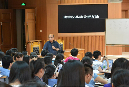 孙学致教授言辞风趣幽默,首先讲授了裁判推理的基本形式,将使用大前提,小前提推导法律后果的方法,用五个英文字母生动形象地展现在同学们面前。教授强调:“法律问题表面简单,内容其实十分复杂,简单地讲解也许会有更好的效果。”教授善于运用图像,将横轴看做“‘请求’‘抗辩’的规则逻辑”,纵轴看做“民事活动关系发展的逻辑”,来讲述如何准确的寻找正确的规则。教授认为,原告请求,被告抗辩,原告一定要在案件的每个环节做出充足的准备,以防被告从各个角度进行抗辩,而被告只需把请求驳回,但往往压力会比较大。