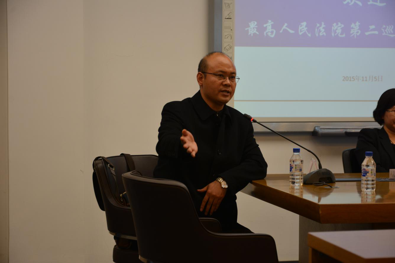 与此同时,最高人民法院第二巡回法庭的苏戈法官在实践基地与实验班同学们也进行了座谈会。李洪明书记与侯学宾老师参加了本次座谈。苏法官首先回顾了自己的大学生活,表示自己作为极速赛车