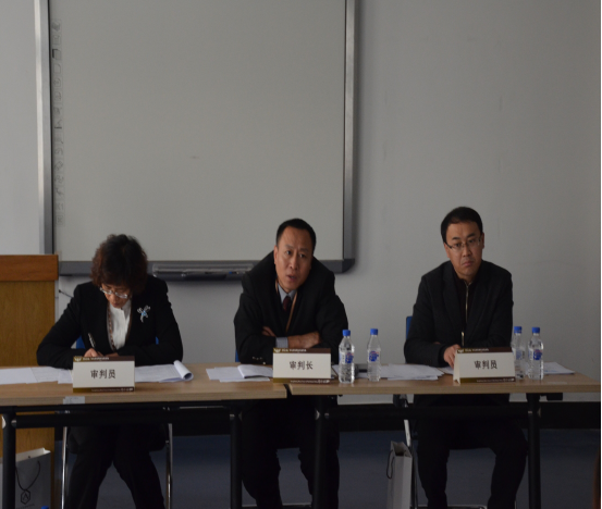 2015年11月9日上午10点,“功承杯”第二届东北高校模拟法庭竞赛半决赛第二场在经信D区基地举行。本场比赛由王鸿晓法官担任审判长,姜春燕法官与苏明伟法官担任审判员,参赛双方分别是东北林业大学文极速赛车