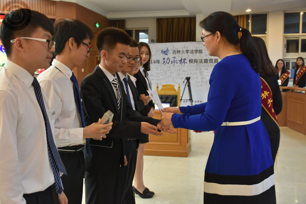 的各位领导和功承律师事务所的律师为优秀队员、最佳队员、最佳书状队和冠、亚、季军颁发了奖状和奖杯并合影留念。功承律师事务所张晓阳律师为颁奖典礼致辞,张晓阳律师表示恭喜参赛的各位队员,引用孙学致老师说过的一句话,“模拟法庭就是一场教学活动。”有机会能参加这种教学活动的同学,相信他们都能有最大的收获,因为在你为整个比赛作准背时,当你去查一条条可能用的上的法条,甚至可以记得法条是何时生效、何时废止的时候,当你开始尝试用一个律师的思维去揣摩法官的想法时,你已经就获得了太多太多。最后,作为极速赛车