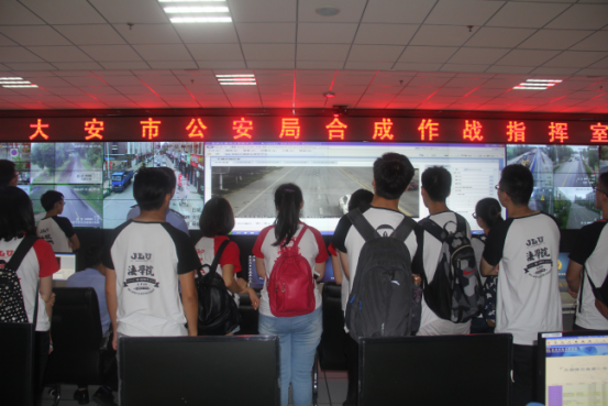 团委书记高岩老师的带领下来到了大安市公安局。“三下乡”团队的同学们首先走进了合成作战指挥室,在这里,公安局的工作人员向大家展示了公安系统的天网系统,同学们颇有感悟,真可谓“天网恢恢疏而不漏”,整个县城的每一个角落,每一个细节在天网系统的监控下都一览无遗。据介绍,目前大安市全境的监控覆盖率可达90%以上,曾经大安市走失过一位智力不健全的老人,当地民警接到报案后,运用天网系统的监控录像沿路追踪,最终将老人成功找回送还给老人家属。同样,在刑事案件中,公安的监控录像也作为视听资料多次成为呈堂证供,为法院公正审判提供了相当的协助。
