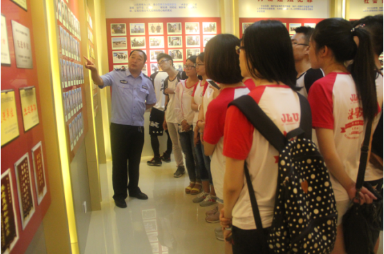 接着,“三下乡”团队来到了大安市公安局的荣誉室,这里展示着大安市公安局作为一个先进的集体所获得的荣誉,以及历任局长、政委以及被评为一等功、一等功模的先进人物的照片墙,在张主任的介绍下,同学们了解了基层公安局工作的艰辛,得知每一位因公牺牲的公安干警的光辉事迹,同学们无不对先辈英烈们表示由衷的钦佩。