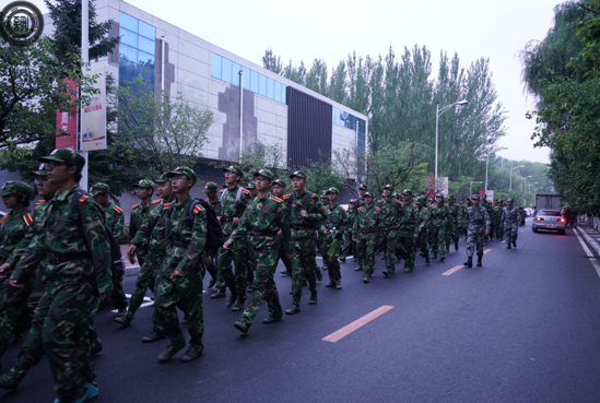 军训旅发出紧急集合命令,要求全体大一新生在体育场集合。五点,全旅集合完毕,旅部的长官向大家传达了以模拟恐怖分子袭击为背景的校区野营拉练指令。在布置了各营任务和拉练过程行军规范之后,随着指挥官一声“出发”令下,各营迅速有序离开体育场,奔赴拉练任务地点。