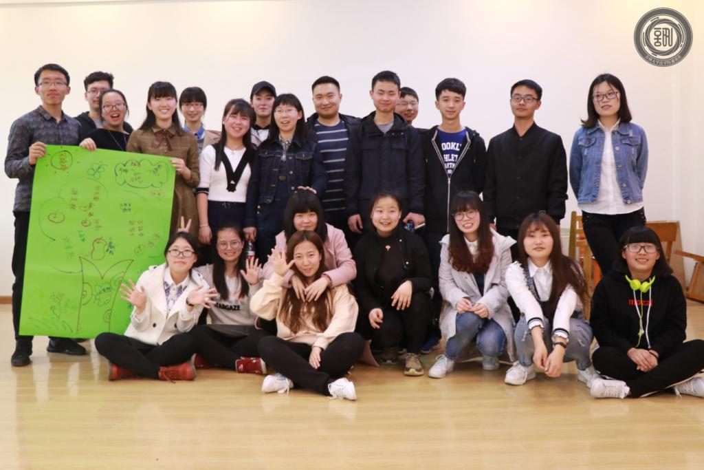 在简单热身后,活动正式开始。首先,朋辈指出如今情绪的控制和宣泄成为当代大学生最大的难题,学会情绪的表达也就成为了我们要学习的不可或少的一课。因此第一环节进行了一个关于情绪表达的游戏,即同学三两一组,每人手执一张情绪卡片,然后将各自的情绪串联在一起编演一个故事。简单的商讨之后,第一组的“送外卖”、第二组的“考试”、第三组的“比身高”以及第四组的“相亲”相继上演,各组的形式别出心裁,同学们更是各显神通,将自己的情绪卡片内容表现得活灵活现。紧接着,第二环节是“人椅破冰”游戏,以便促进同学之间的默契和团结,五班同学玩的不亦乐乎,不仅收获了游戏中的欢乐,更是增强了同学们之间的信任。随后,在舒缓的背景音乐下,同学们被分成两组,顺时针传递一张写着自己名字的纸条,每个同学都在纸上写下该同学的优点,同学们认真思考和书写着,渐渐地学会欣赏身边的人、学会发现身边的美。而在收到自己纸条的同时,大家也收获了自信,懂得了欣赏自己、肯定自己。活动进入尾声,在一张大大的彩纸上,五班全体同学开始绘制属于自己班级的团体树,大家你一笔我一画,在欢声笑语中留下了永久的回忆,最后,五班全体同学与班代师姐一起合影留念。