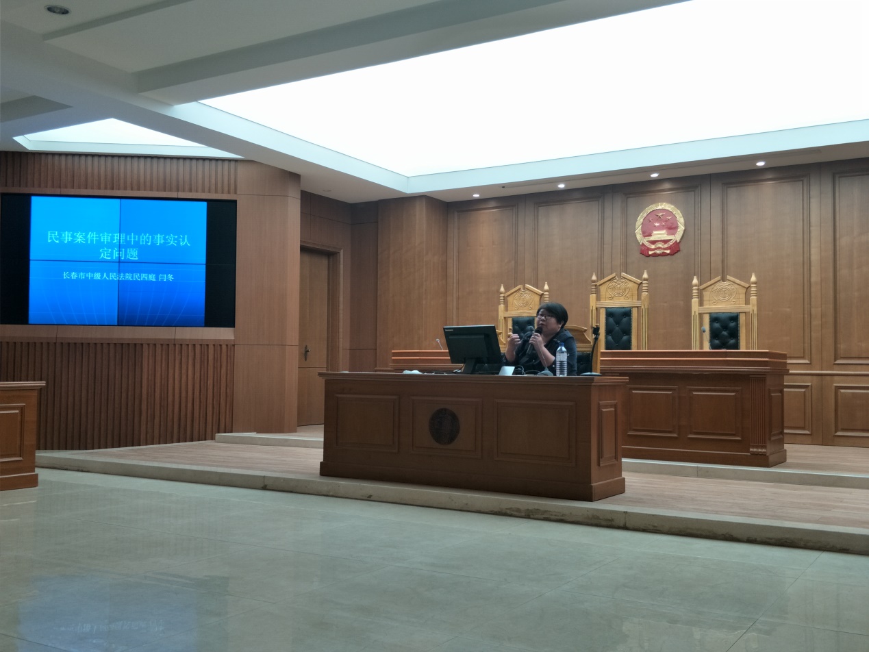 模拟法庭比赛评委的长春市中级人民法院民四庭的闫冬法官作为主讲人。