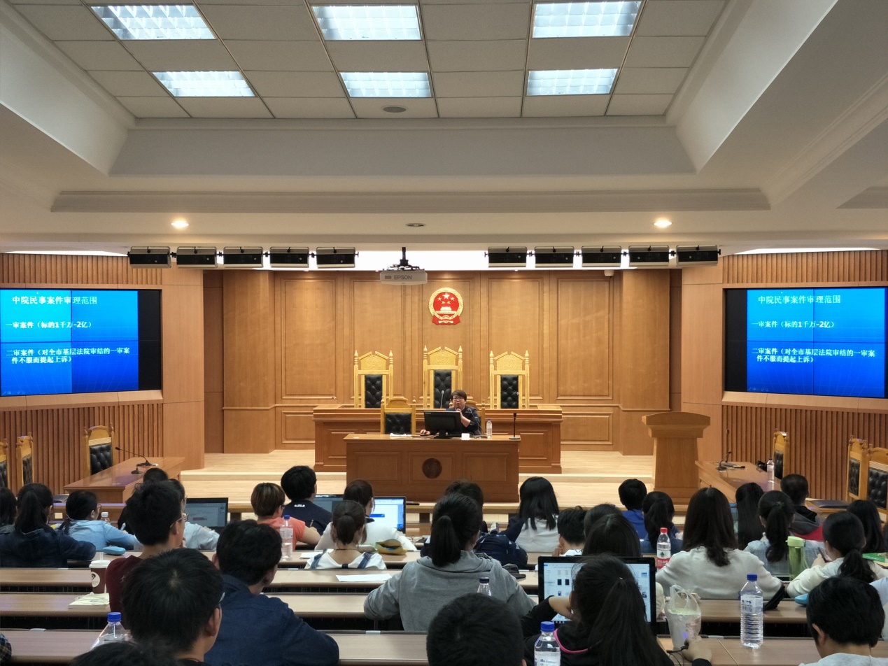 在主持人对严冬法官的简单介绍及对会议内容的简单概括之后,主讲人开始了她具体的讲解。首先,严冬法官就民事审判庭向大家进行了简单的介绍,其中,民一庭主要负责与不动产相关的合同以及建设施工合同,民二庭主要负责婚姻家庭、继承、侵权、涉外案件等,民三庭主要负责破产案件,随后,严法官又向大家讲述了一些她参与审理的精彩案件,极大的引起了同学们的兴趣。