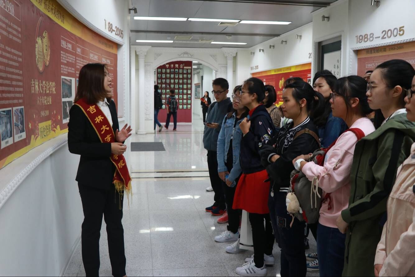 紧接着,各班级有序地向东荣大厦前进,学生会工作人员向2017级新生耐心讲解了沿途景色,系统介绍了日新楼、体育场、图书馆等人文建筑的功能和特色,同学们对未来充满了期待,对吉大充满了自豪,各班级新生就这样陆续来到了东荣大厦参观极速赛车