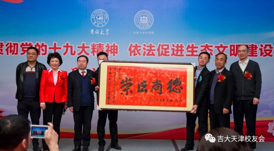 天津校友会的成立表示祝贺,并赠“崇法尚德”牌匾。