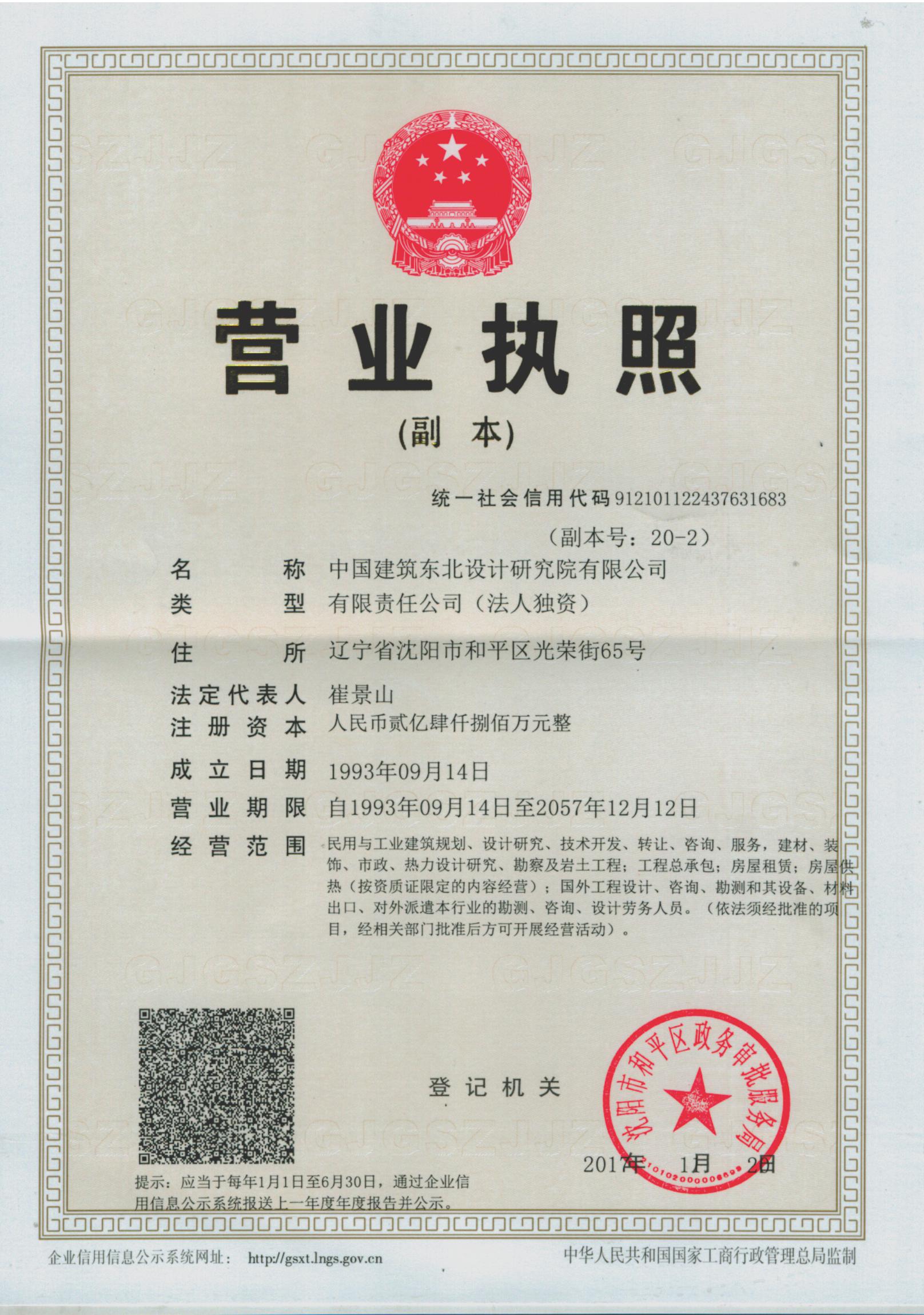 中国建筑东北设计研究院有限公司(CNADRI),是隶属于世界500强第24位、全球最大的住宅工程建造商、中国最具国际竞争力的建筑企业集团、国资委直管上市大型央企——“中国建筑股份有限公司(CSCEC)”的骨干成员企业集团,总部驻地辽宁省沈阳市,具有甲级设计资质,同时具有市政、工程咨询、工程监理、工程总承包、装饰工程等甲(壹)级资质。