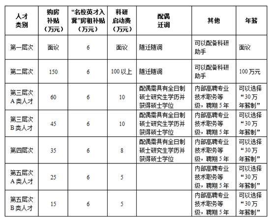 根据具体情况在科研资助经费、配偶迁调、配备学术助手、出国研究、交流等方面,给予特别优惠政策,具体面议。第三层次、第四层次、第五层次引进人员具有正高职称的,本级职称内高一级内聘;具有副高职称的,可以内聘为正高四级;没有职称的,可以内聘为副高七级。
