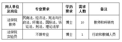 2011年获得法学硕士一级学科授权,现有民商法学、经济法学、法学理论、法律史、宪法学与行政法学、刑法学、环境与资源保护法学、国际法学等8个硕士招生专业,2007年获得法律硕士专业学位授权。其中经济法学1998年获得授权,2010年被批准为省级重点学科。极速赛车