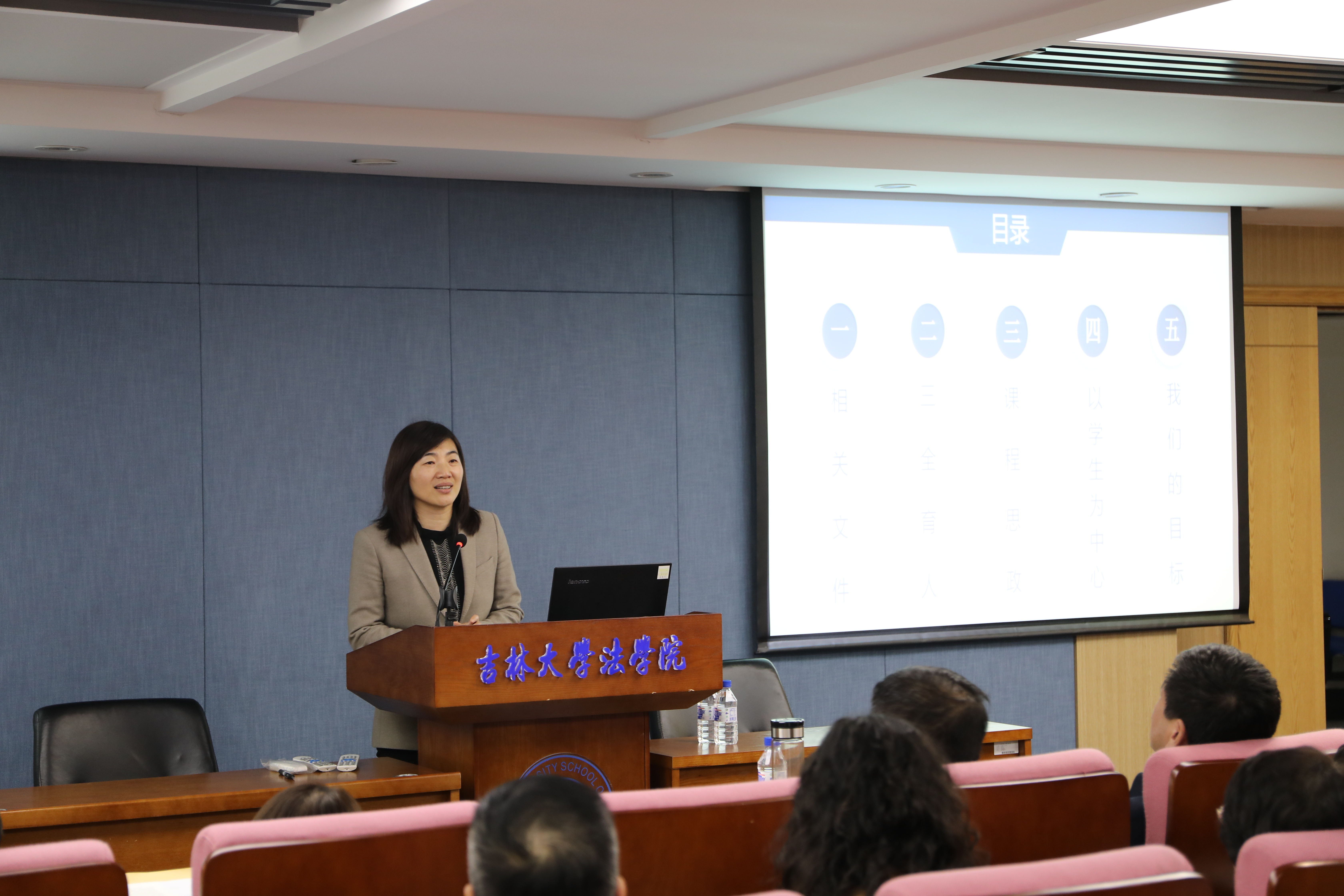 副院长曲红梅教授做了主题为“‘以学生为中心’的‘课程思政’在‘三全育人’中的作用”的理论思考和经验分享,深入细致地展示了课程思政的魅力。一是解读相关文件,强调教师队伍建设和新时代师德师风建设的重要性,顺应新时代,形成大格局。二是通过课程思政实现“三全育人”,充分发挥课程思政的教育合力作用和育人价值。三是明确课程思政的目标要求和内容重点,体系化开展课程建设,提升教师课程思政建设的意识和能力。四是以学生为中心,将课堂教学、价值引领、科学研究和人才培养融为一体,形成三全育人的格局。五是提出课程思政的目标,“以学生为中心”是切入点,“三全育人”是课程思政追求的目标。她强调,“三全育人”综合改革既是对当下育人项目、载体、资源的整合,更是对长远育人格局、体系、标准的重新建构。最后,曲红梅老师指出,课程思政要从自我完善和协同发展机制两方面进行建设,共同构建新时代的好生活。