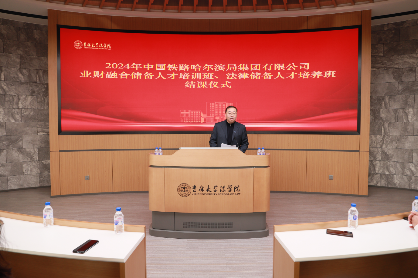 党委书记张杰、副院长吕欣、理论法学研究中心副主任刘舰、教学指导任佳、班主任路宏伟、白伟以及哈铁班全体100名学员共同参加结业典礼。典礼由副院长吕欣主持。