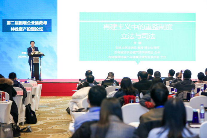 齐明教授发表《再建主义中的重整制度立法与司法》的主题演讲,从再建主义前提的内涵、我国重整制度的引入、重整制度的立法特点、我国重整制度司法实践、问题和解决五个方面对重整制度进行重点研究,以再建为导向指引了困境企业的拯救路径。
