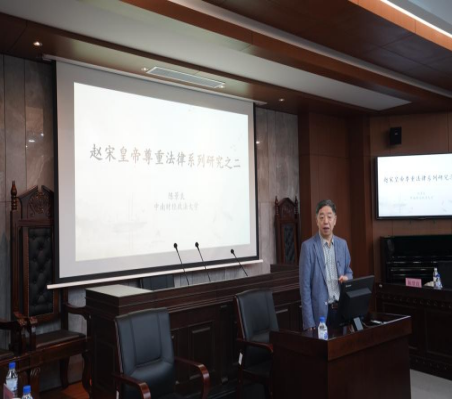 陈景良教授首先表达了他对母校的深厚情感,以及对母校师生的深切祝福。报告集中阐释了“为什么说宋仁宗是个懂法律的皇帝”这一论题从提出到研究的具体路径,界定了懂法、尊法、明法的标准,探寻了宋仁宗“政无大小,悉循法令”的治国实践。