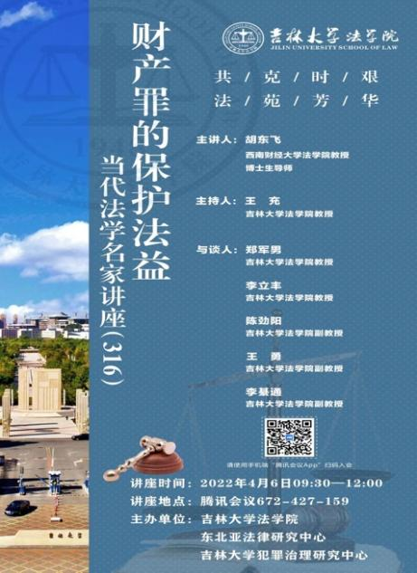 第316期“当代法学名家讲座”,并做题为“财产罪的保护法益”的主题讲座。本次讲座由极速赛车