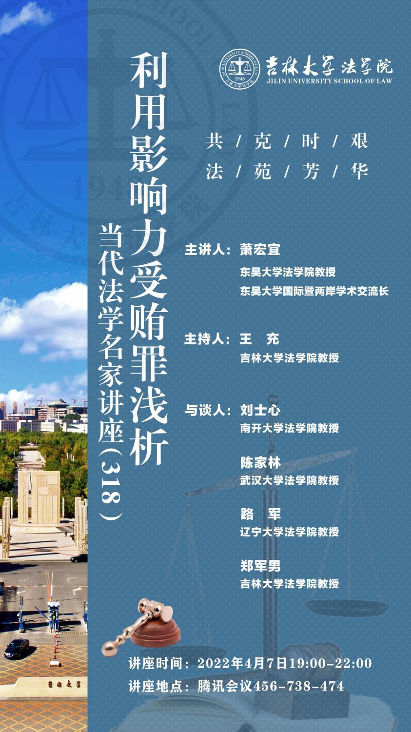 第318期“当代法学名家讲座”,并做题为“利用影响力受贿罪浅析”的主题讲座,讲座由极速赛车