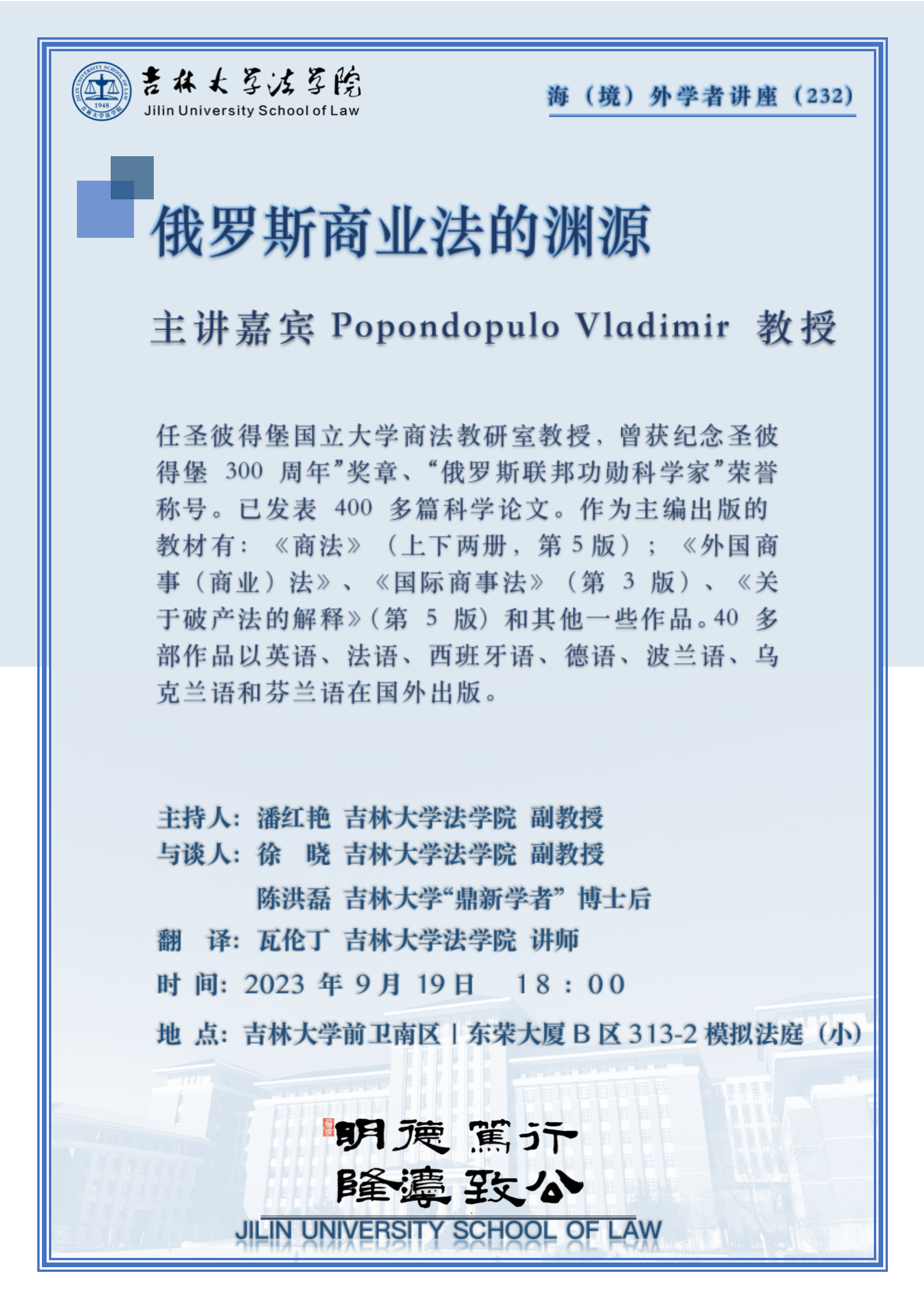 主讲人:Popondopulo Vladimir 教授
